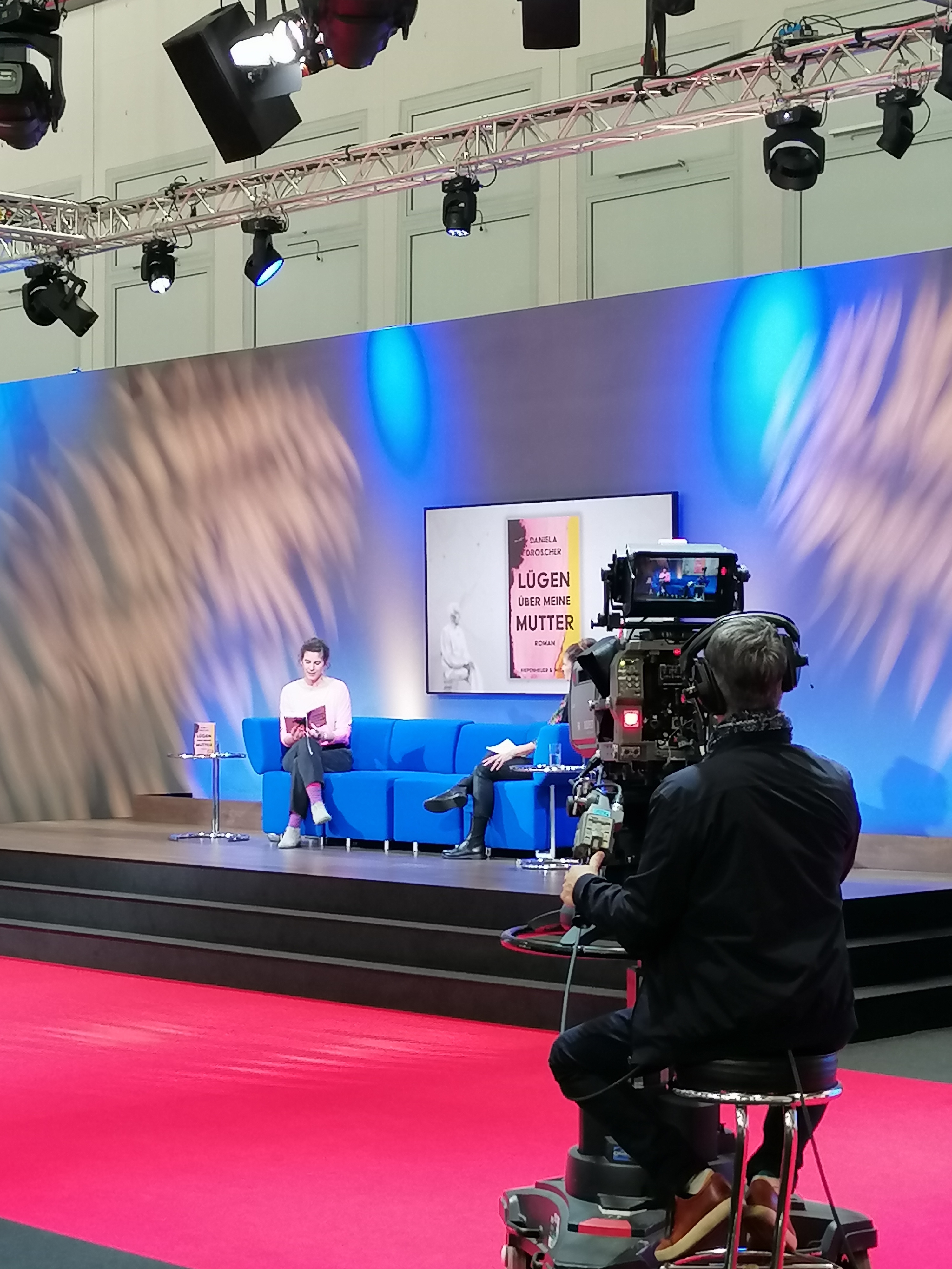 Da es mein erster Besuch auf der Buchmesse war, habe ich mir zwar einige interessante Veranstaltungen und Vorträge rausgeschrieben, bin aber mit dem Plan hingefahren, es eher locker angehen zu lassen und mir erstmal in Ruhe einen Überblick zu verschaffen. Entsprechend habe ich den Freitag vormittag also genutzt, um erstmal durch die drei größten Hallen (mit Fokus Romane und Sachbuch) zu schlendern und mich in die verschiedenen Verlage zu vertiefen. Trotzdem konnte ich mir am „Blauen Sofa“ auch zwei sehr interessante Gespräche anhören. Einmal mit Daniela Dröscher, der Autorin des für den Deutschen Buchpreis nominierten autobiografisch geprägten Romans „Lügen über meine Mutter“. Das Buch habe ich schon auf meinem Kindle auf der „To Read“ Liste, allerdings habe ich es vor der Buchmesse nicht mehr geschafft, es schon zu lesen. So konnten die Ausführungen der Autorin zu Body Shaming und dem komplizierten und missbräuchlichen Verhältnis ihres Vaters zu ihrer Mutter meine Vorfreude auf das Buch aber nochmal verstärken.