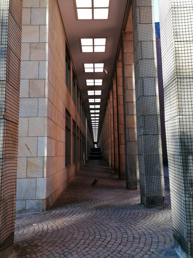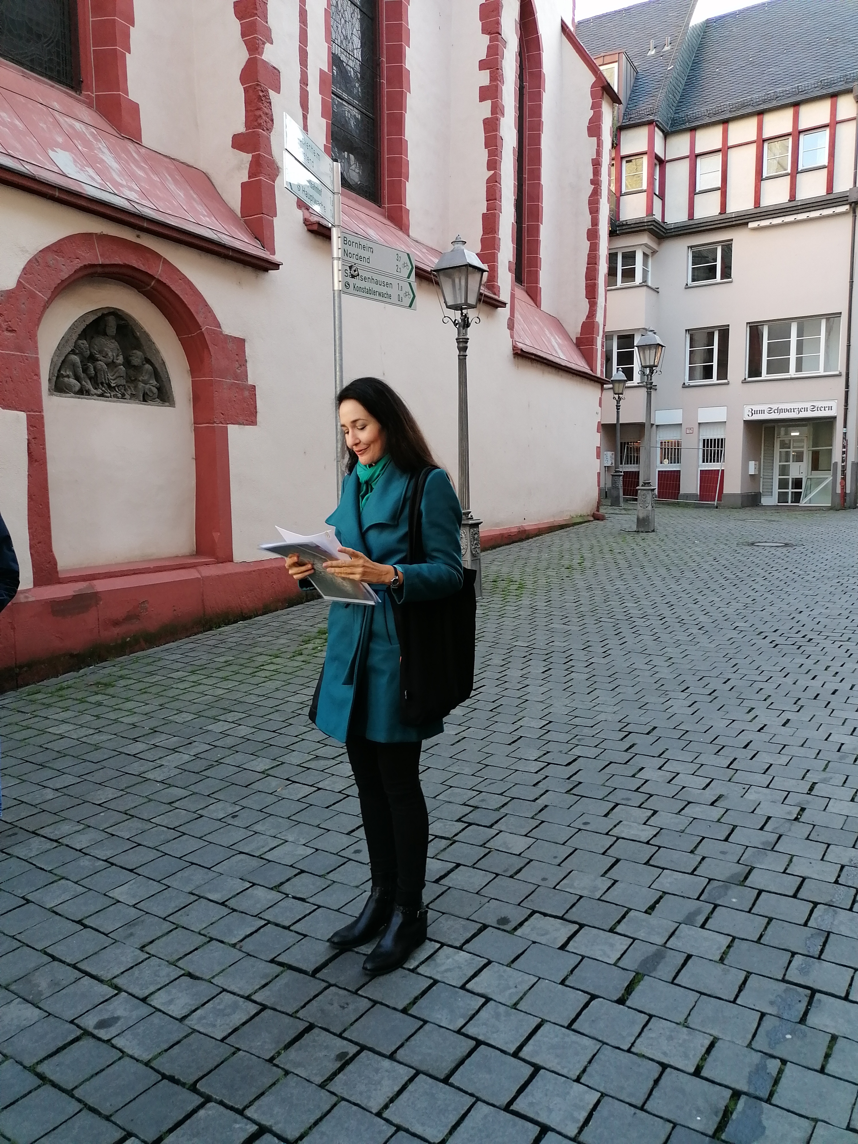 Julia Kröhn führte uns und eine bunte Mischung aus Blogger:innen und Leser:innen sehr kompetent, unterhaltsam, sympathisch und historisch fundiert an einige Originalschauplätze des Buches, gleichzeitig eine großartige Art und Weise die Stadt kennen zu lernen. Da ich zuletzt irgendwann 2006 oder 2007 beruflich kurz in Frankfurt war, kannte ich die neu gestaltete „Altstadt“ auch noch gar nicht und war von der Architektur sehr beeindruckt.